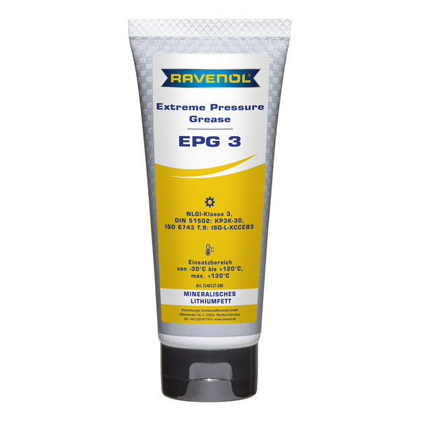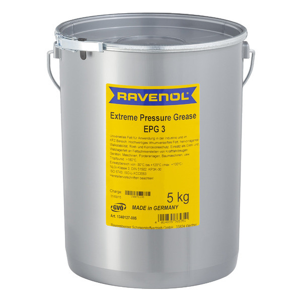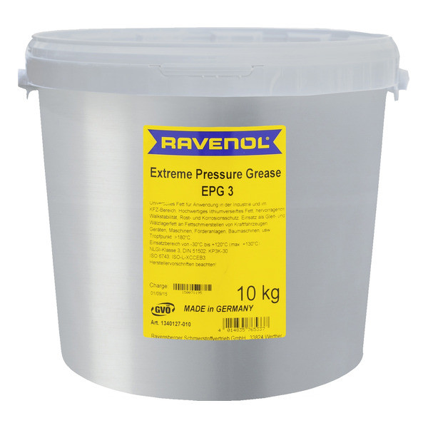 RAVENOL Extreme Pressure Grease EPG 3 is used as grease for the lubrication of easy loaded antifriction bearings and machine components. It is also suited as multipurpose lubrication grease for vehicles.