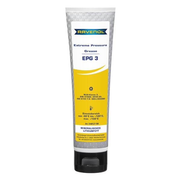 RAVENOL Extreme Pressure Grease EPG 3 is based on high-quality base oils by lithium soaps (Li-12-hydroxy stearate) as thickener.