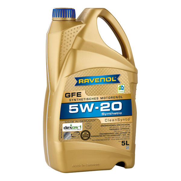 RAVENOL GFE SAE 5W-20 սինթետիկ, հեշտ հոսող շարժիչային յուղ, որը պատրաստված է CleanSynto® տեխնոլոգիայով մարդատար բենզինային և դիզելային շարժիչների համար՝ տուրբո լիցքավորմամբ և վառելիքի ուղղակի ներարկումով և առանց դրա: