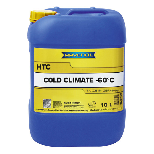 RAVENOL HTC COLD CLIMATE -60°C-ը պատրաստի օգտագործման սառեցնող հեղուկ է, նախապես խառնված ջրի հետ, բոլոր եղանակներին օգտագործման համար, մշակված մոնոէթիլենգլիկոլի հիման վրա՝ Mercedes, BMW, Opel, Saab և General Motors ավտոմեքենաների շարժիչի սառեցման համակարգերի համար, երաշխավորելով պաշտպանություն կոռոզիայից և սառեցումից՝ ցածր ջերմաստիճաններով կլիմայական գոտիներում օգտագործելիս, առանց ամինների և ֆոսֆատների: