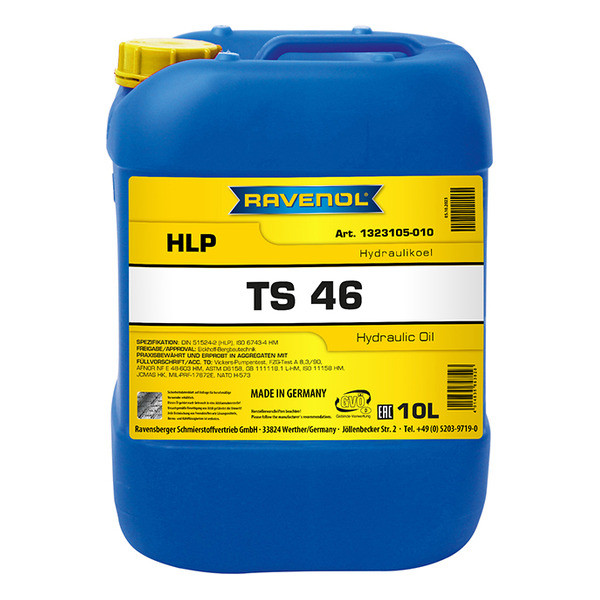 RAVENOL Hydraulikoel TS 46 (HLP) – HLP դասի հանքային հիդրավլիկ յուղ: Բարձրորակ բազային յուղի և հավելանյութերի հատուկ համալիրի օգտագործման շնորհիվ ապահովվում են լավ մածուցիկության և ջերմաստիճանի բնութագրեր և հուսալի պաշտպանություն բարձր բեռների կոռոզիայից և մաշվածությունից, ինչպես նաև չեզոք վերաբերմունք կնքման նյութերի նկատմամբ: