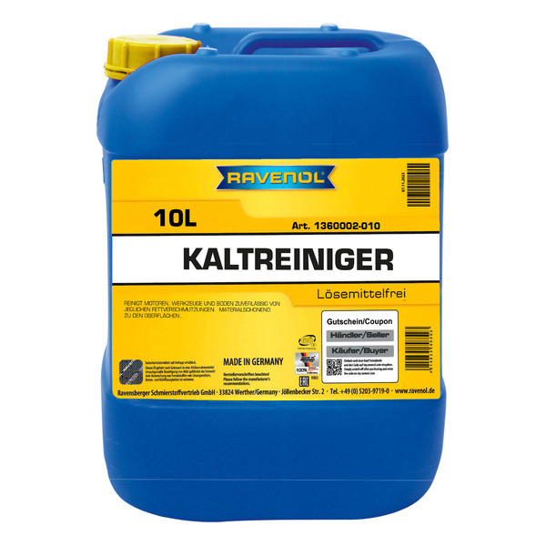 RAVENOL Kaltreiniger loesemittelfrei-ն նախատեսված է շարժիչների, շարժիչի խցիկների, շասսիի և տրանսպորտային միջոցների ու արդյունաբերական օբյեկտների այլ խիստ կեղտոտ մակերեսների լվացման համար: Պարունակում է լուծիչներ, որոնք հեռացնում են յուղը, ճարպը, մուրը, ածխածինը և կեղտը: