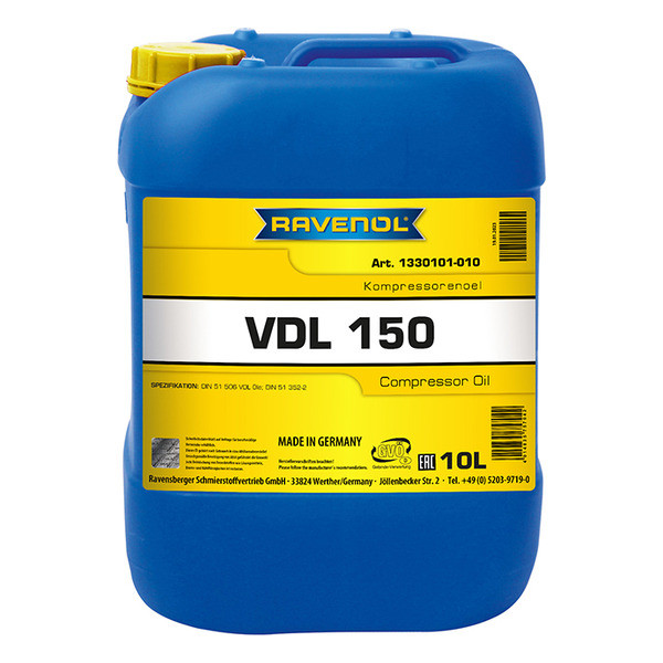 RAVENOL Kompressorenoel VDL 150-ը կոմպրեսորային յուղ է, որը արտադրվում է Գերմանիայում՝ պարաֆինային հանքային յուղերի բարձրորակ խառնուրդներից՝ լավ հավասարակշռված մոխրազուրկ հավելանյութերի համալիրով, որոնք ապահովում են օքսիդացման դիմադրություն, կոռոզիայից պաշտպանություն և բարձր արդյունավետ ծայրահեղ ճնշման բնութագրեր: