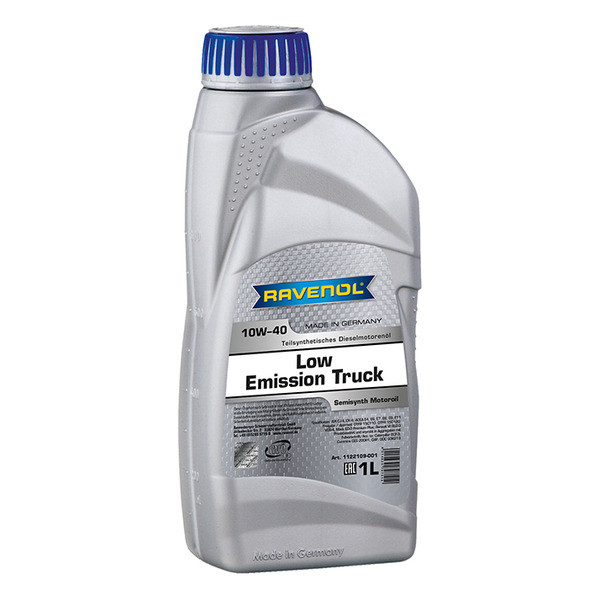 RAVENOL Low Emission Truck SAE 10W-40 – կիսասինթետիկ շարժիչի յուղ բեռնատար ավտոմեքենաների համար. Սա SHPD (Super High Performance Diesel) բոլոր սեզոնային կիսասինթետիկ շարժիչային յուղ է, որը մշակվել է Euro V և Euro VI արտանետումների ստանդարտներին համապատասխան և օգտագործվում է բարձր հզորությամբ առևտրային տրանսպորտային միջոցների դիզելային շարժիչներում: Հարմար է արտանետվող գազերի համար օպտիմիզացված շարժիչների համար, վերամշակումից հետո արտանետվող գազերով: