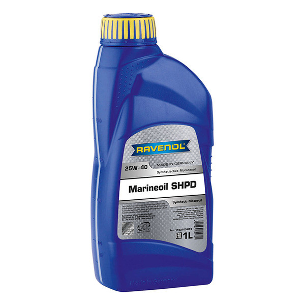 RAVENOL Marineoil SHPD 25W-40 synthetic շարժիչային յուղի ձևակերպումը հատուկ մշակվել է դիզելային ստացիոնար նավային շարժիչների ժամանակակից չորս հարվածային շարժիչների համար։ Հուսալիորեն պաշտպանում է շարժիչը ծայրահեղ ծանր աշխատանքային պայմաններում, ներառյալ կտրուկ, կարճաժամկետ բեռները շարժիչի առավելագույն արագությամբ, երբ թիավարման պտուտակը դուրս է գալիս ջրից: Շարժիչի յուղի ընտրության հարցում սխալի հնարավորությունը բացառելու համար RAVENOL Marineoil SHPD 25W-40 synthetic արտադրանքը ներկված է կապույտ գույնով:
