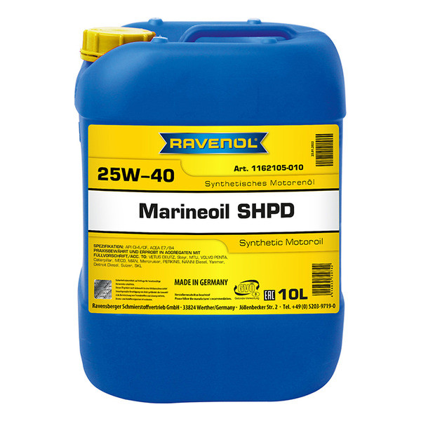 RAVENOL Marineoil SHPD 25W-40 synthetic – բարձրորակ սինթետիկ շարժիչային յուղ, որը պատրաստված է Գերմանիայում պոլիալֆաոլեֆինների հիման վրա ' հիդրոկրեկինգային բազային յուղի հավելումով: