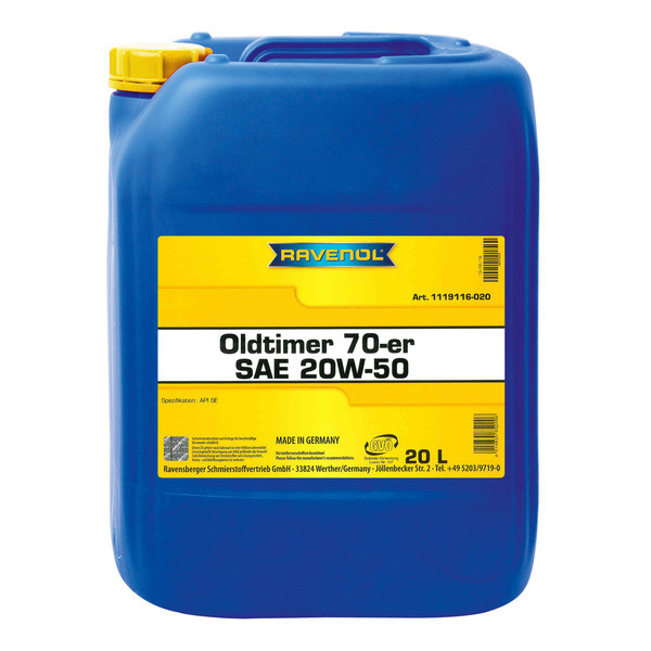 RAVENOL Oldtimer 70-er 20W-50 API SE - հանքային մոնոգրադ շարժիչի յուղ դասական (ռետրո-ավտոմեքենաների) համար մինչև 1979 թ. Պատրաստված է բարձր մաքրված հանքային բազային յուղի հիման վրա ՝ ըստ բաղադրատոմսի պահանջվող հավելումների փաթեթի հավելումով ։