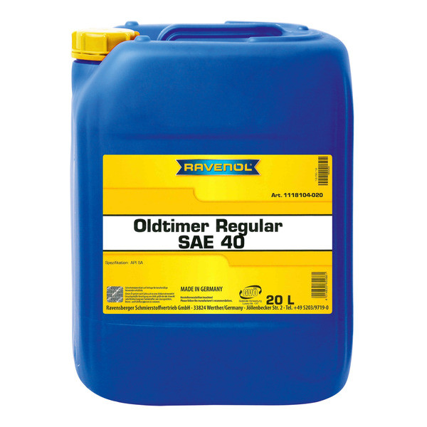 RAVENOL Oldtimer Regular SAE 40 API SA-ն հանքային մոնոգրադ շարժիչային յուղ է դասական (ռետրո) մեքենաների համար, հագեցած և առանց յուղի ֆիլտրի: