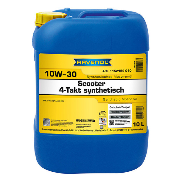 RAVENOL SCOOTER 4-T SAE 10W-30 յուղը հարմար է սկուտերների, մոտոցիկլետների և այլ փոքր ծավալի մոտորային տրանսպորտային միջոցների բոլոր չորստակ շարժիչներում օգտագործելու համար: Այն կարող է օգտագործվել օդային և հեղուկով սառեցվող շարժիչներում: