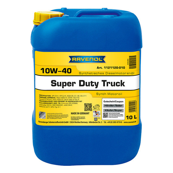 RAVENOL SDT Super Duty Truck SAE 10W-40-ը սինթետիկ, բարձր համաձուլվածքային, հեշտ հոսքով շարժիչային յուղ է՝ ցածր մոխրի պարունակությամբ հավելանյութերի փաթեթով (Low SAPS): Հատուկ մշակված է բեռնատարների բարձր բեռնվածությամբ դիզելային շարժիչներում տարվա ընթացքում օգտագործելու համար: Նախատեսված է EURO 2, EURO 3, EURO 4, EURO 5 և EURO 6 դասի տուրբոդիզելային շարժիչների համար՝ մինչև 500 ppm ծծմբի պարունակությամբ դիզելային վառելիքի հետ համատեղ։