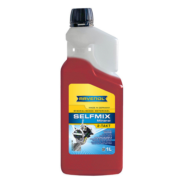 RAVENOL Selfmix 2T – հանքային յուղ փոքրածավալ սարքավորումների երկհարված շարժիչների համար (օգտագործվում է որպես աշխատանքային հեղուկ, խառնվում է վառելիքի հետ):