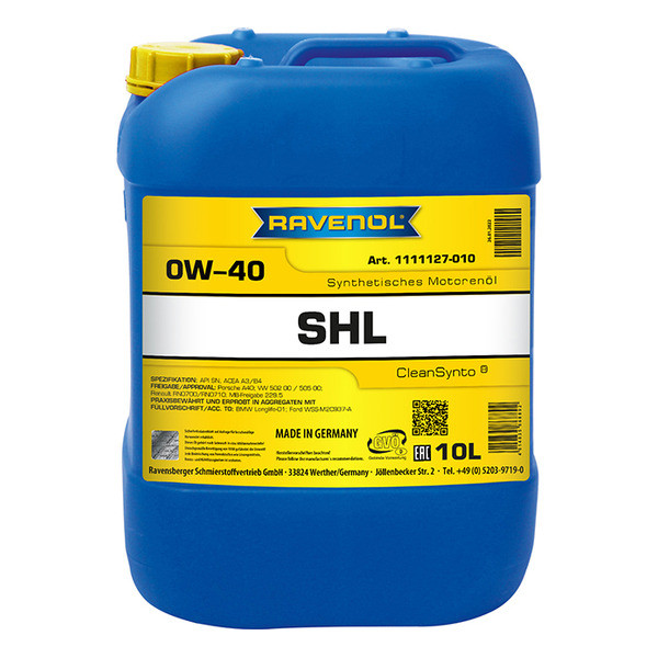 RAVENOL SHL SAE 0W-40 - Սինթետիկ շարժիչային յուղ, որը հիմնված է հիդրոկրեկված բազային յուղի և PAO-ի վրա, որը մշակվել է CleanSynto® տեխնոլոգիայի միջոցով բենզինային և դիզելային մարդատար ավտոմեքենաների շարժիչների համար՝ տուրբո լիցքավորմամբ և առանց ուղղակի ներարկման:
