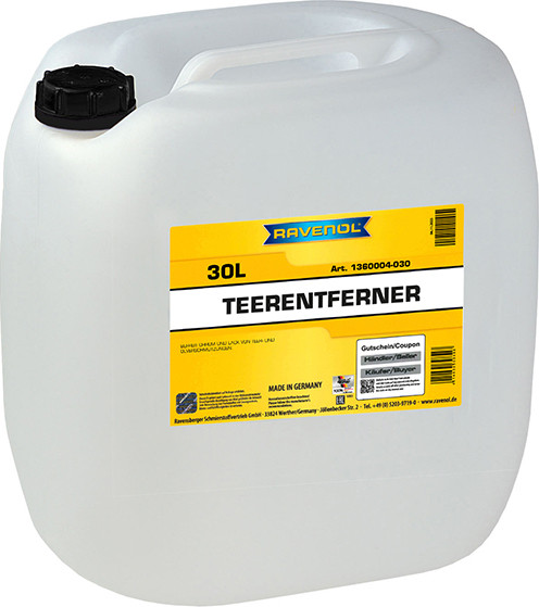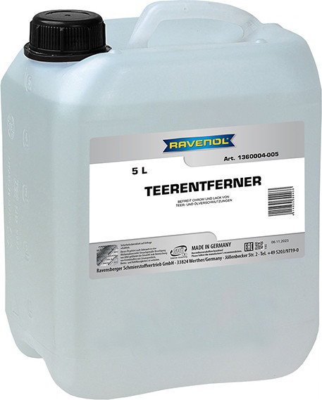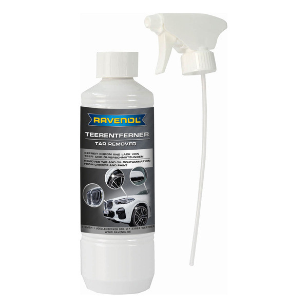 RAVENOL Teerentferner – լաքապատ, պլաստմասե և քրոմապատ մասերի վրա մեքենայի մակերևույթը թեթև բիտումային և յուղային բծերից մաքրելու միջոց: Անմիջապես լուծում և հեռացնում է բիտումի բծերը մեքենայի թափքից: Անվտանգ է ներկերի ծածկույթների համար: