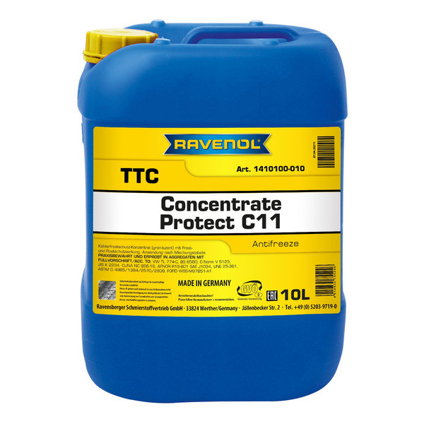 RAVENOL TTC Protect C11 Concentrate հակասառիչը ամենահայտնի, դեղնականաչավուն խտացված հակասառիչն է, որը համապատասխանում է G11 հավանությանը: