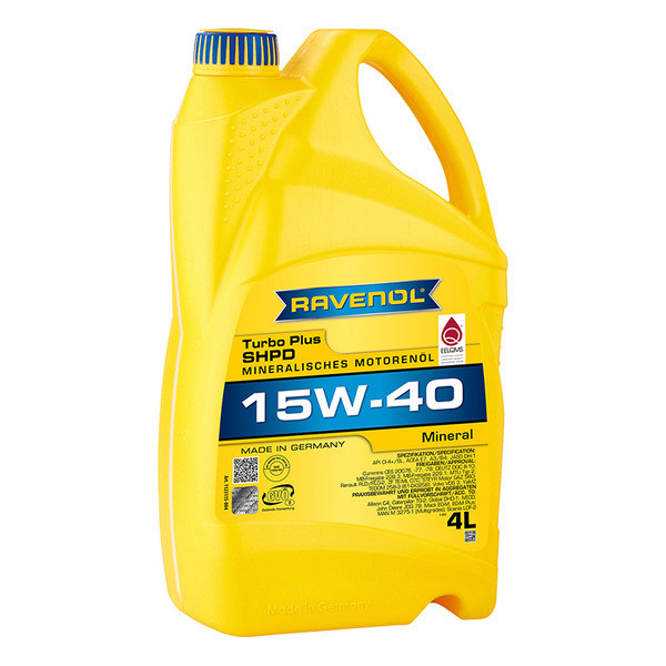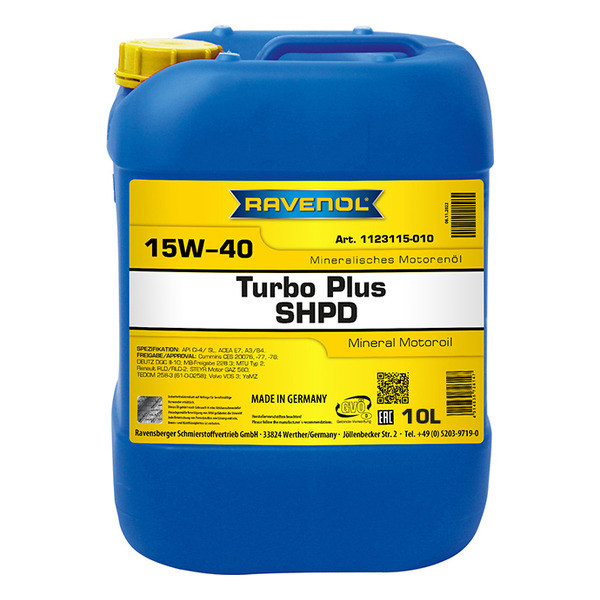 RAVENOL Turbo plus SHPD SAE15W-40 – SHPD դասի հանքային շարժիչի յուղ խառը նավատորմի համար: Նախատեսված է դիզելային և բենզինային շարժիչների օգտագործման համար նաև տուրբո լիցքավորմամբ: Երաշխավորում է երկար փոխարինման միջակայք (ըստ ավտոարտադրողի ցուցումների):