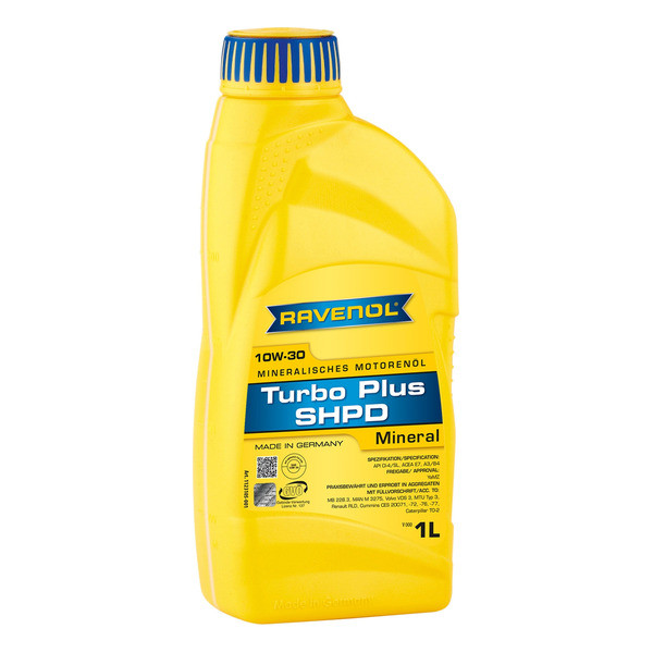 RAVENOL Turbo plus SHPD 10W-30 – SHPD դասի շարժիչային յուղ խառը տիպի մեքենաների համար: Նախատեսված է դիզելային և բենզինային շարժիչներում, այդ թվում՝ տուրբո լիցքավորմամբ օգտագործելու համար: Երաշխավորում է երկարացված փոխարինման միջակայքեր (համաձայն մեքենայի արտադրողի հրահանգների):